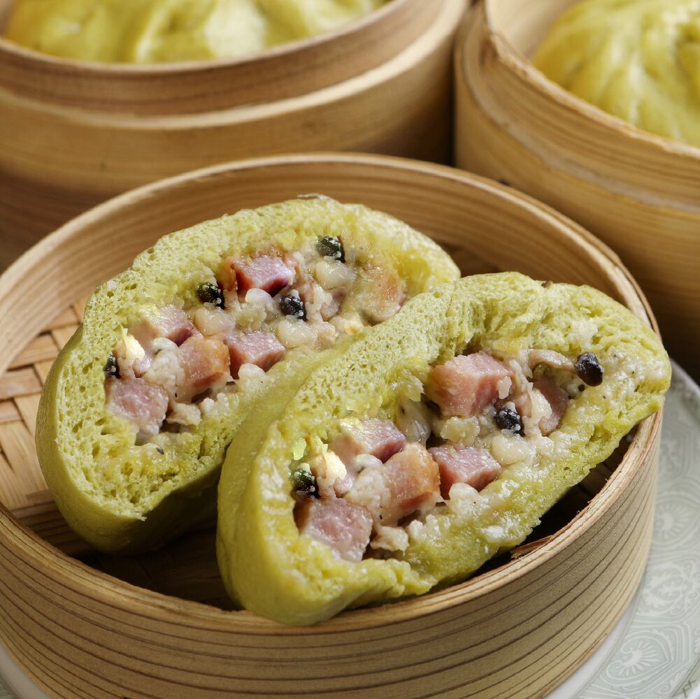 豚骨スープとコンソメ、香辛料で味付けした豚まんです。