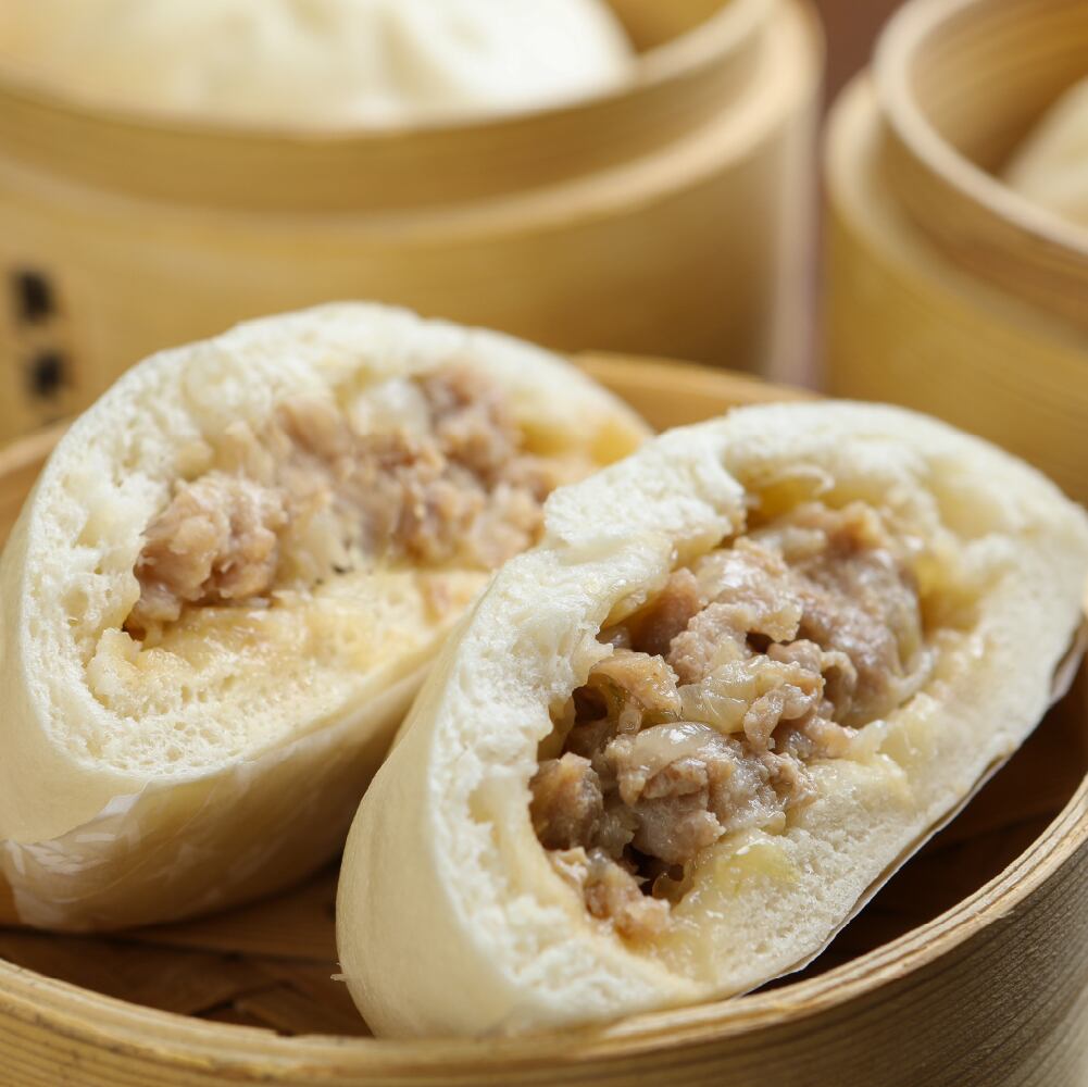 豚骨スープとコンソメ、香辛料で味付けした豚まんです。