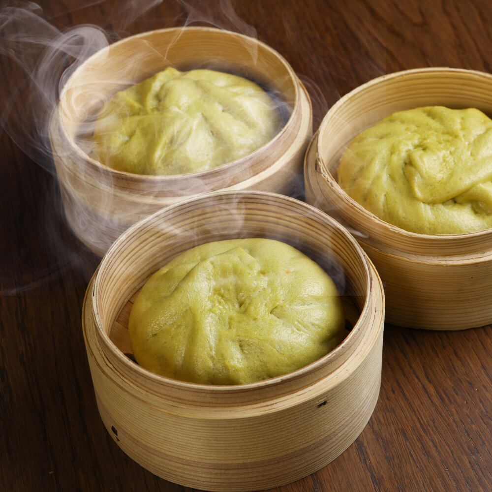 キノコとベーコンとチーズが入ったホワイトソースの豚まんです。